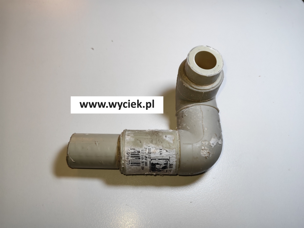 Jak z bliska wygląda wyciek wody z instalacji PP ? Udało się nam zdobyć nieszczelną kształtkę PP z instalacji wody ciepłej z mieszkania w Katowicach. Chcielibyśmy pokazać Państwu jak wygląda taka nieszczelność z bliska i zastanowić się co mogło ją spowodować.