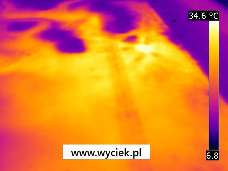 - Działanie: Urządzenie mierzy promieniowanie podczerwone, wizualizując różnice temperatur na powierzchniach. Ciepła woda wyciekająca z rury CO tworzy charakterystyczny ślad cieplny.