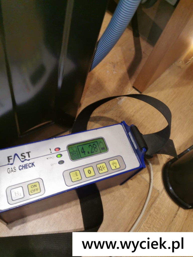 W przypadku wycieków z instalacji podziemnych, grzewczych lub w trudno dostępnych miejscach, stosujemy gaz znacznikowy (mieszanina azotu i wodoru). Gaz wprowadzony do instalacji ulatnia się w miejscu nieszczelności i jest wykrywany przez ultraczuły detektor.