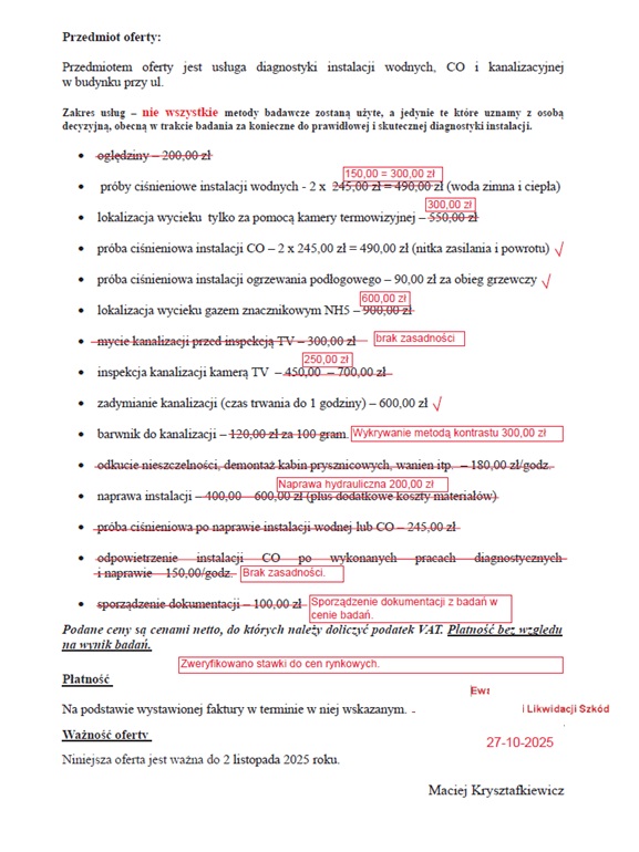Obrona: W przypadku nieuzasadnionych argumentów ubezpieczyciela (np. kwestionowanie przyczyny zalania lub zawyżona amortyzacja), konieczne może być uzyskanie niezależnej ekspertyzy na własny koszt.