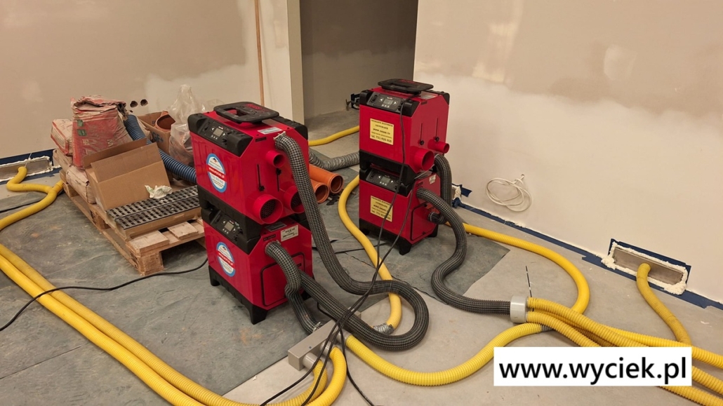 Oferujemy również wynajem osuszaczy kondensacyjnych i wentylatorów, abyś mógł samodzielnie przyspieszyć proces schnięcia.