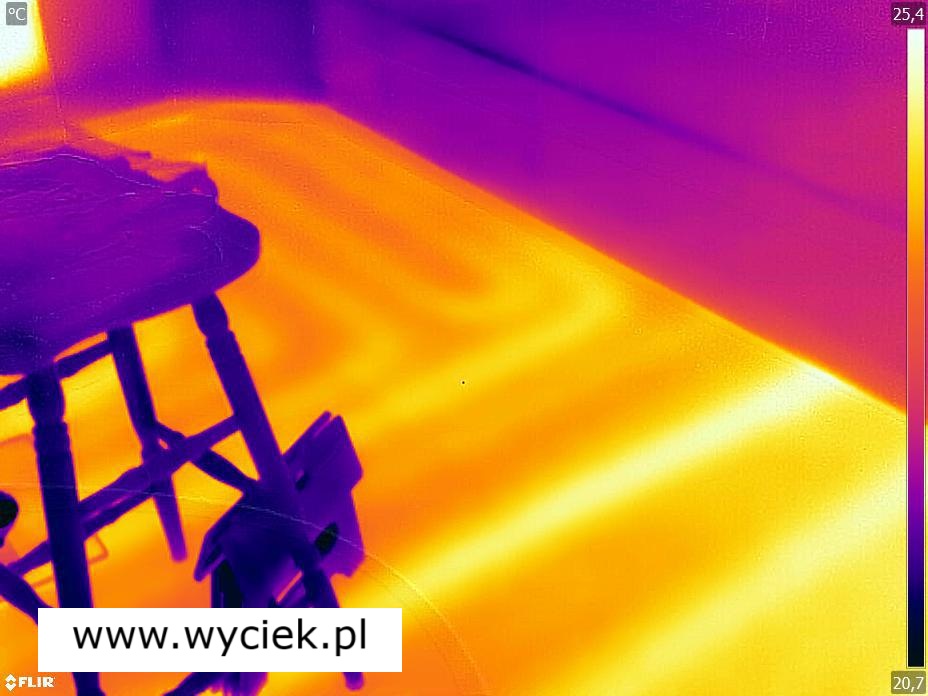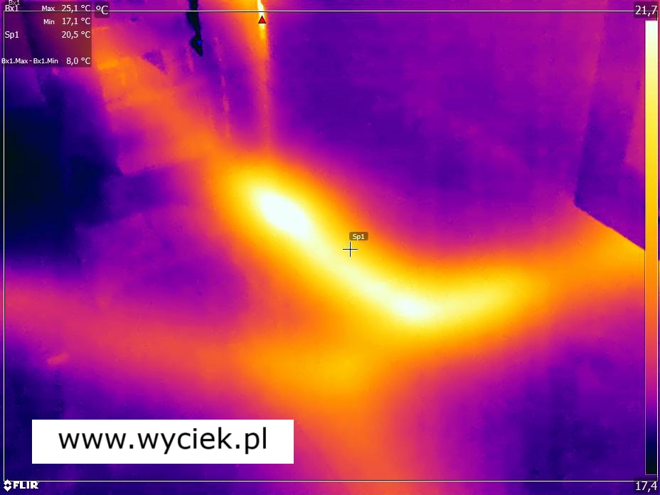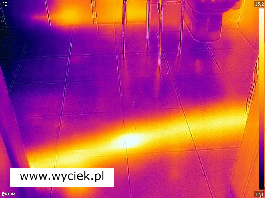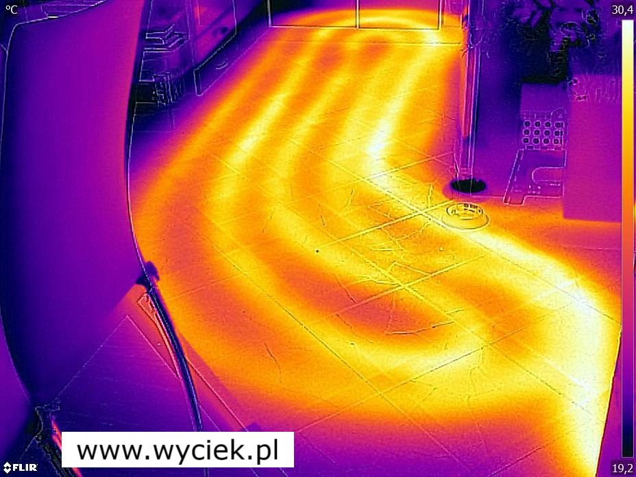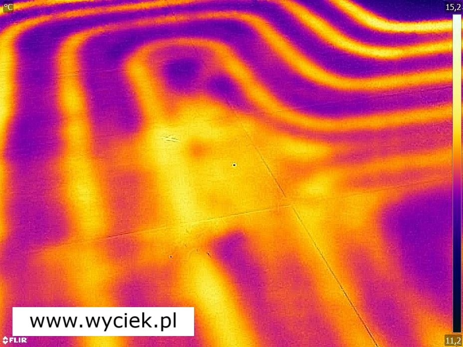 - W przypadku ogrzewania podłogowego rury z ciepłą wodą emitują charakterystyczne ciepło. Wyciek wody, niezależnie od tego, czy jest to ciepła czy zimna woda, zmienia rozkład temperatury na powierzchni podłogi.