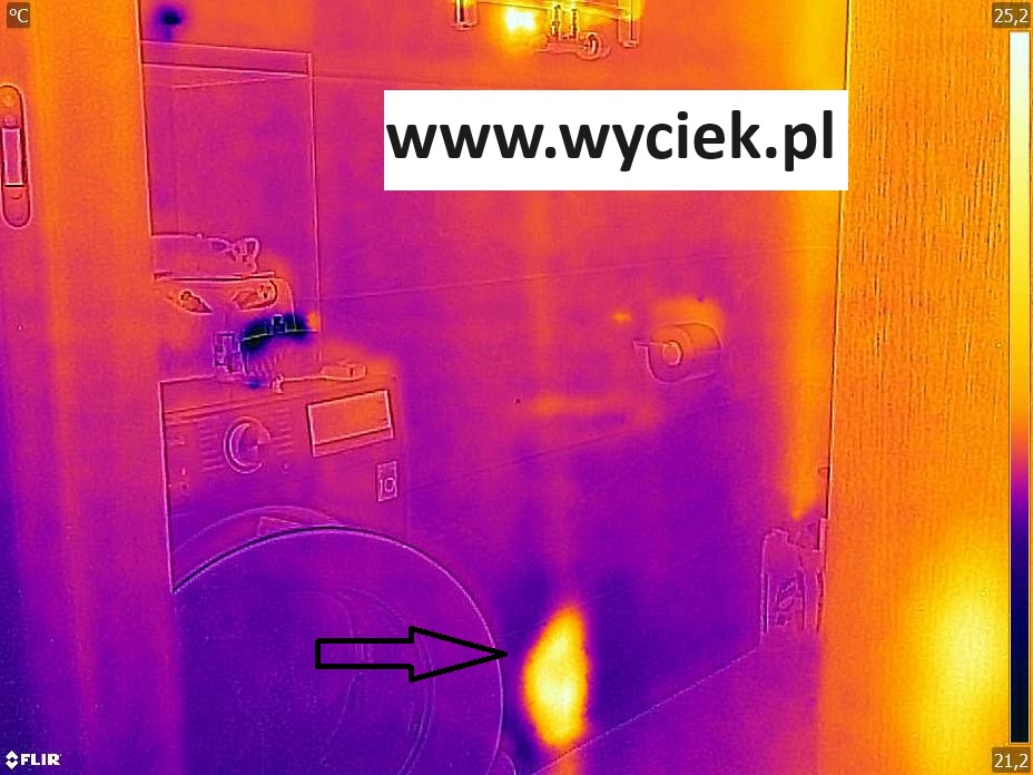 Wykonałem proste badanie termowizyjne, praktycznie po kilku minutach zobaczyłem miejsce nieszczelności instalacji – w ścianie , pod grzejnikiem łazienkowym.